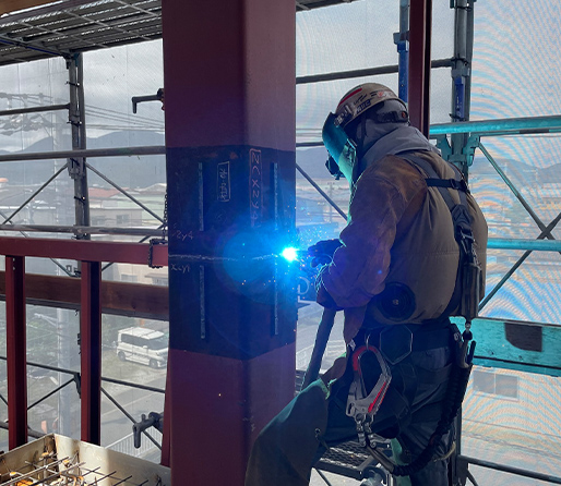 現場は主に大規模な施設がほとんどで、補修・新設などを行います。また、高所での作業となることもあります。